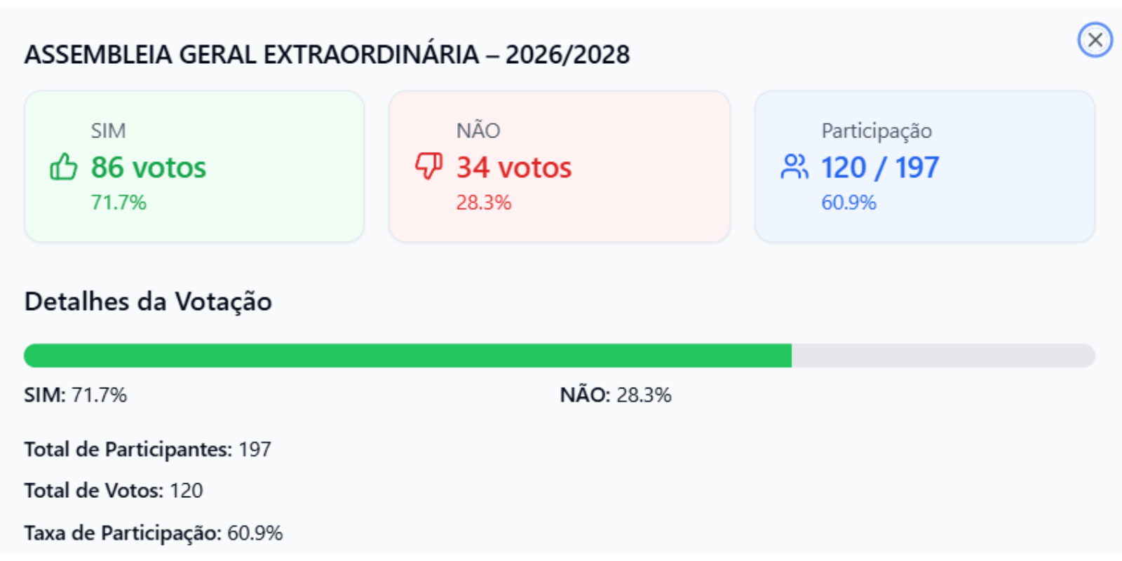 As votações, realizadas na plataforma digital, aconteceram do dia 26/03/2026 das 09:00 às 16:00. (Horário de Brasília).